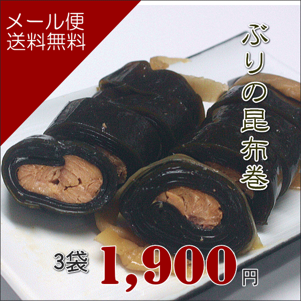 【メール便送料無料】【恵味や】ぶり昆布巻×3袋 おせち専門店 北海道小樽きたいち 最安値